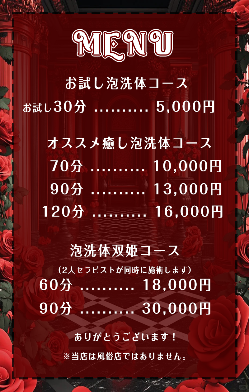 ・未成年者、泥酔者、同業者、スカウト目的、違法薬物使用者、暴力団関係者、その他当店がふさわしくないと判断した方。